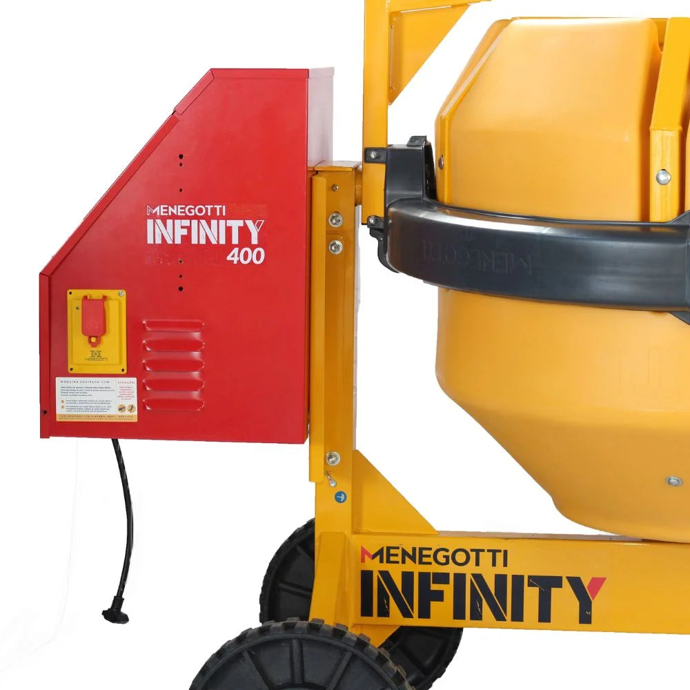 Essa é a hora de investir no equipamento certo! A Betoneira 400L Infinity está entre as mais procuradas do mercado por unir inovação, robustez e segurança. Seu kit de segurança integrado e a roda macia facilitam o manuseio no canteiro, reduzindo riscos e aumentando a mobilidade. Aproveite agora — esse é o tipo de equipamento que se paga rápido e permanece forte por anos.